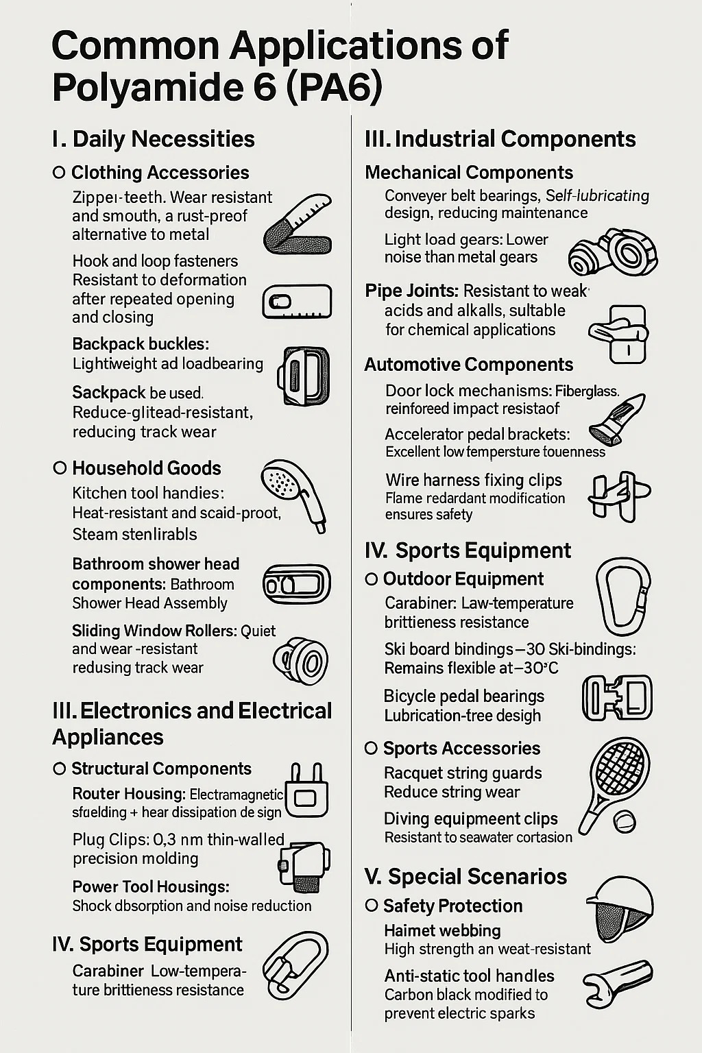 Sau đây là phần giới thiệu về các ứng dụng phổ biến của polyamit 6 (PA6):